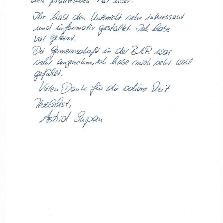 Mir hat es sehr, sehr gut gefallen. Das Lernen in kleinen Gruppen tat mir beim Lernen sehr gut.