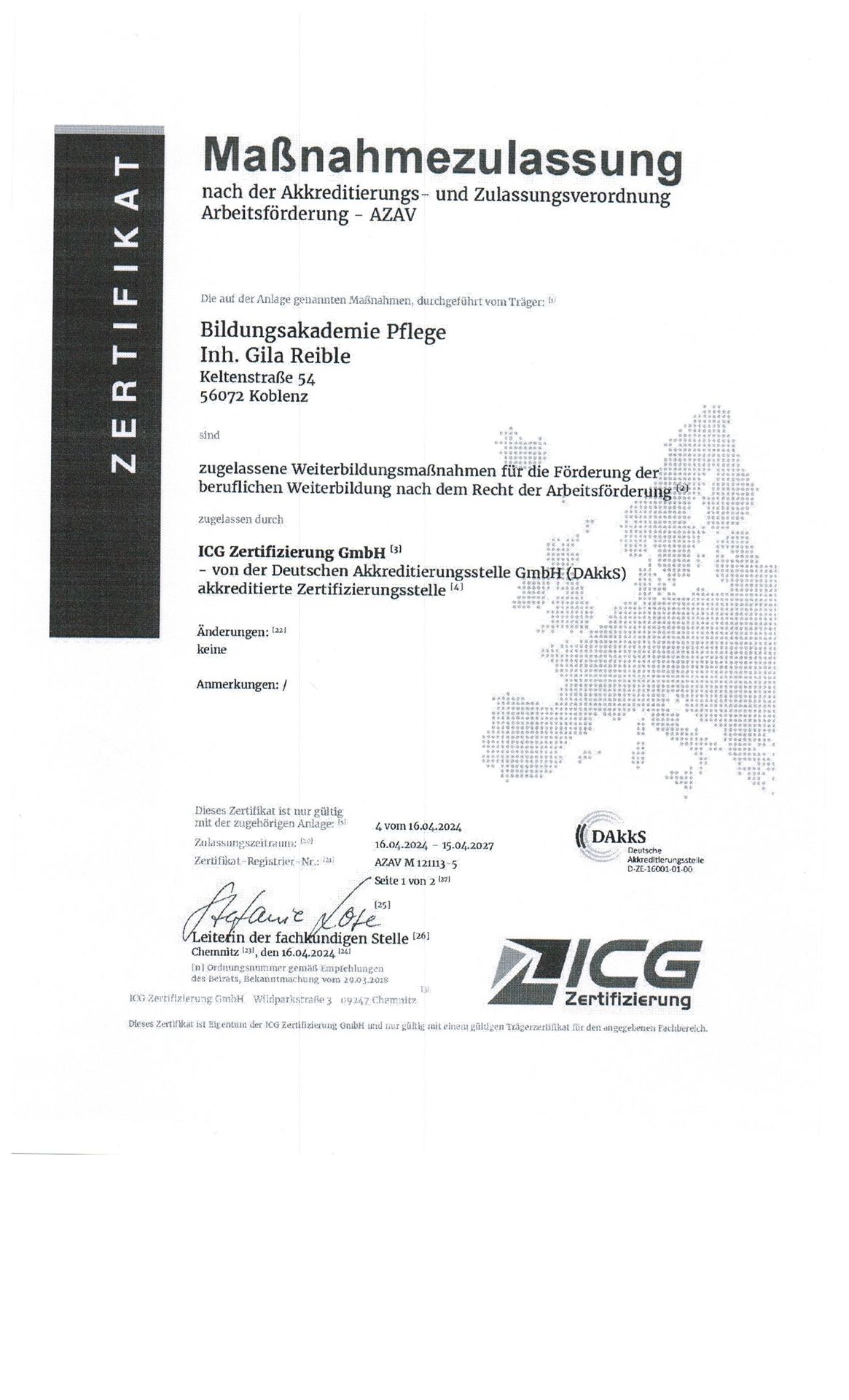 die Zertifizierungsstelle statt. Die Laufzeit der Träger sowie Maßnahme Zulassung beträgt