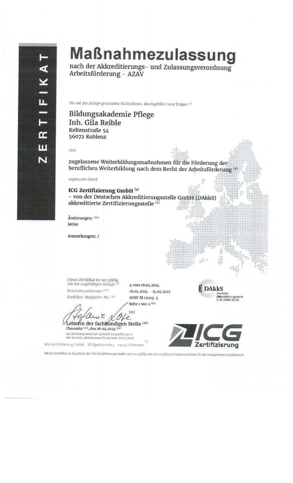 Ohne Zertifizierung kann keine Durchführung von Maßnahmen der
